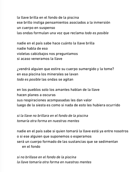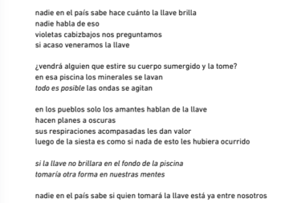 Le poème s’intitule : Un cuerpo formado de las sustancias que se sedimentan en el fondo (Un corps formé par les substances qui se déposent au fond)