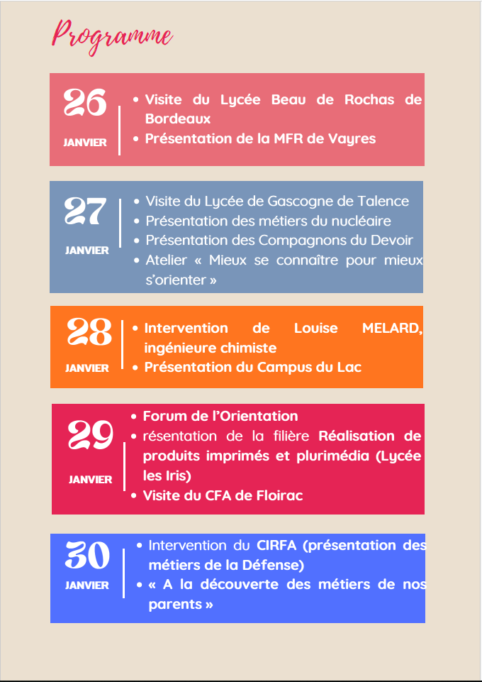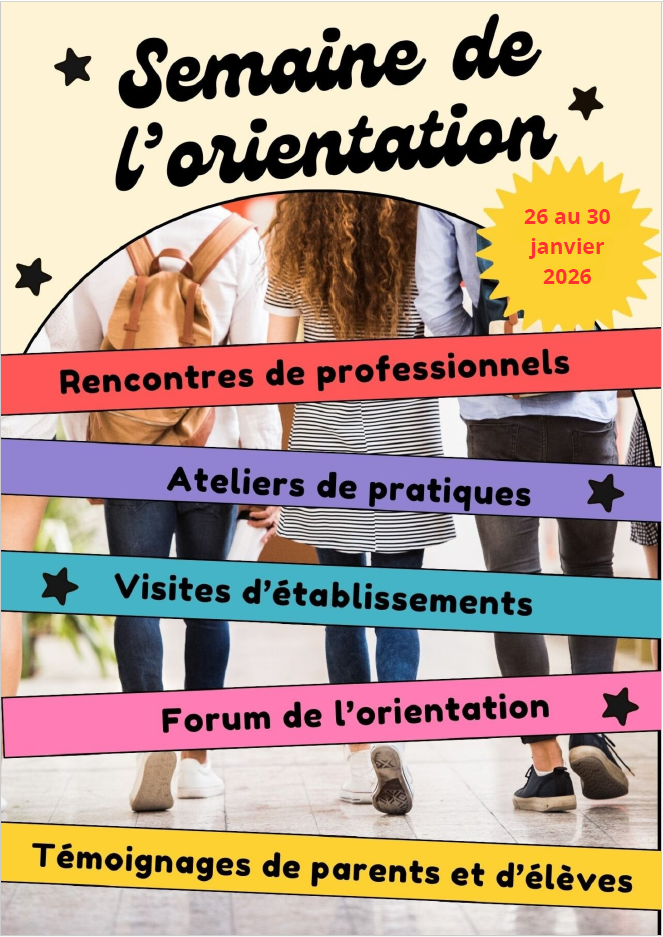Du 26 au 30 janvier, le collège organise une semaine spéciale dédiée à l’orientation, une occasion unique pour les élèves de découvrir leur futur parcours scolaire et professionnel.